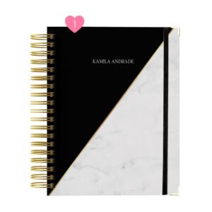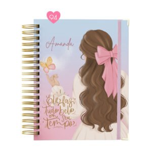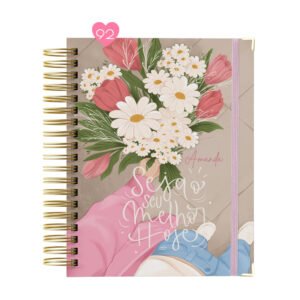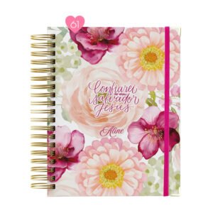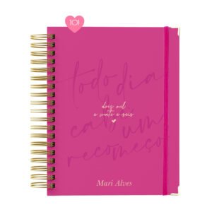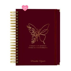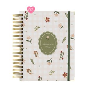 O modelo com prancheta oferece a praticidade de um suporte rígido para anotações e o clássico wire-o, ideal para quem precisa de praticidade, facilidade e bastante espaço para as anotações diárias! Datado de Janeiro a Dezembro. Possui espaço para anotações de dados pessoais, calendário 2025 e 2026, este ano eu quero, ciclo menstrual, viagens do ano, logins e senhas, livros para ler, filmes/séries para assistir, playlist, contas a pagar, cuidados com a saúde, controle de peso e medidas, roda da vida, planejamento anual, planejamento mensal e controle financeiro no final de cada mês.